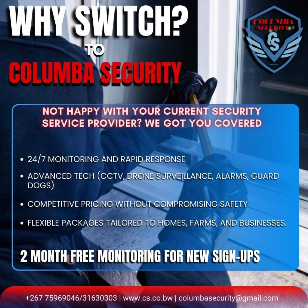 Established in 2012, Columba Security (Pty) Ltd is a wholly citizen-owned security leader headquartered in Gaborone. We combine disciplined personnel, cutting-edge technology, and a 24/7 national command center to deliver customized protection for government, corporate, and residential clients across Botswana.